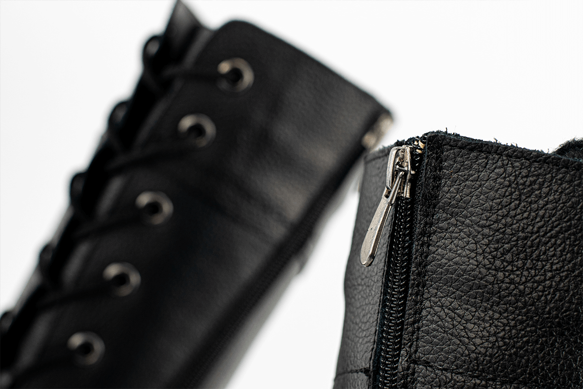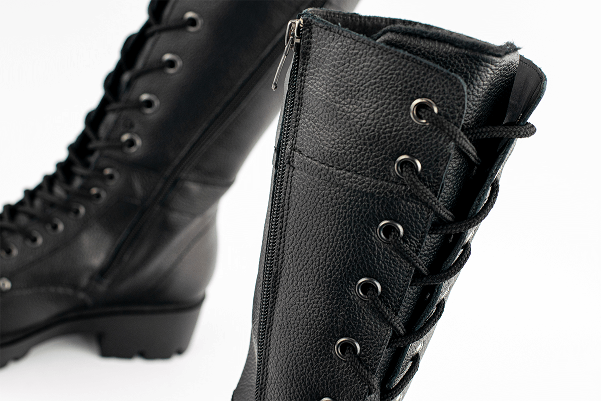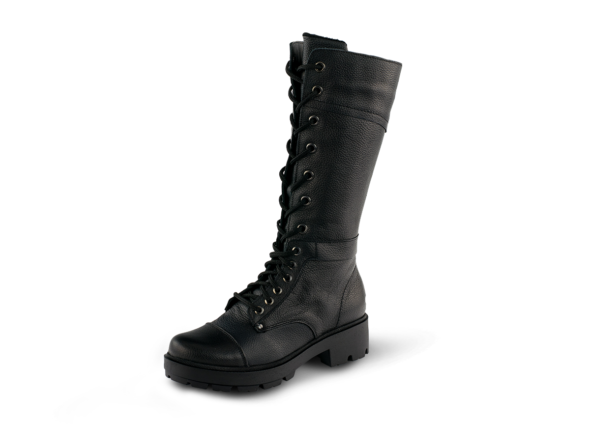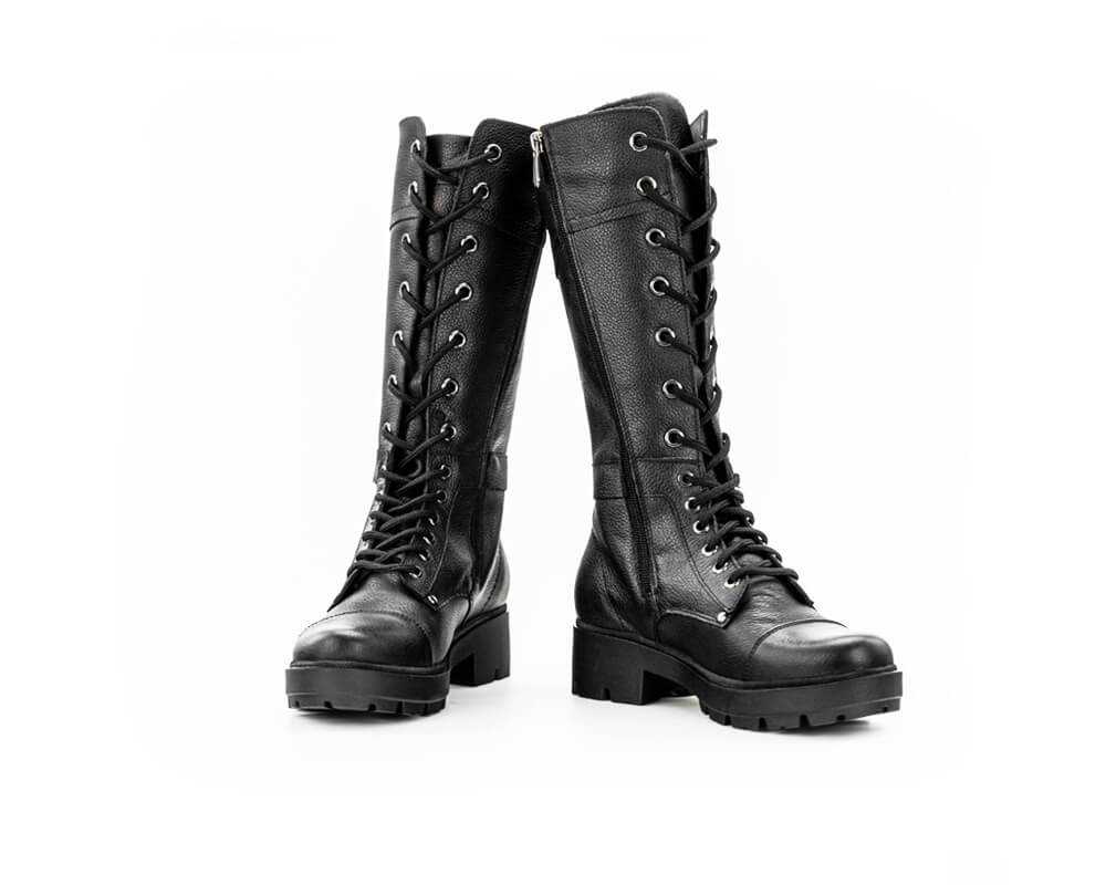 Високи дамски кубинки с грайферно ходило, което осигурява удобство и стабилност, дори при преминаване по заледени повърхности. Моделът е решен в класическо черно и се обува много лесно с помощта на цип и връзки.