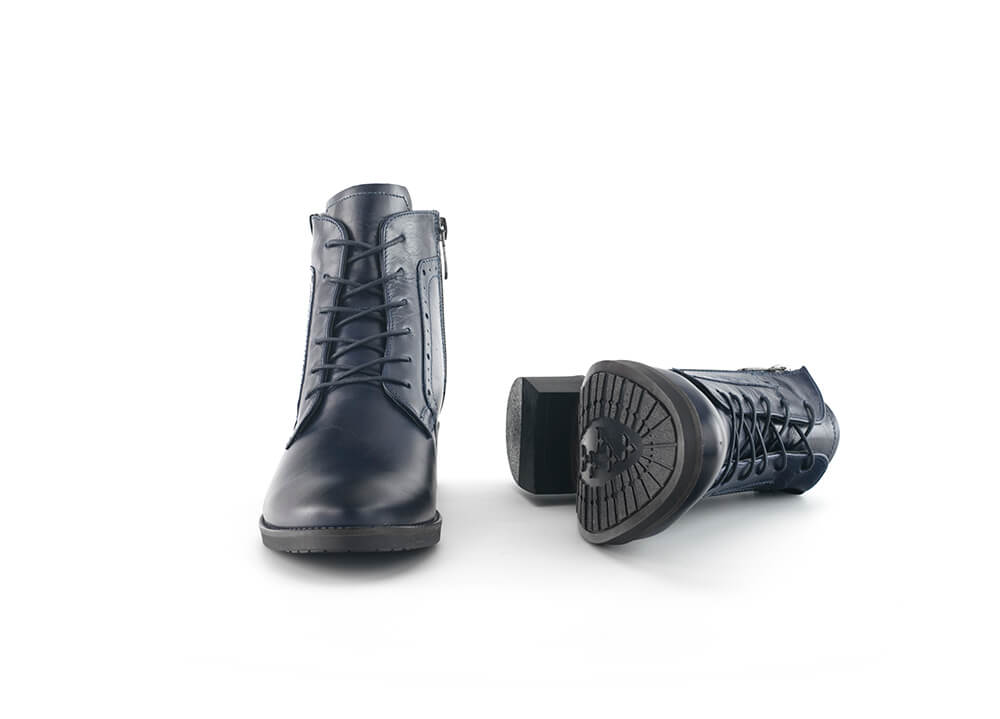 Изчистен и много актуален модел дамски боти, решен в тъмносин цвят. Ботите са с максимално изчистена визия, със семпла декоративна перфорация и се комбинират много лесно с различни облекла.