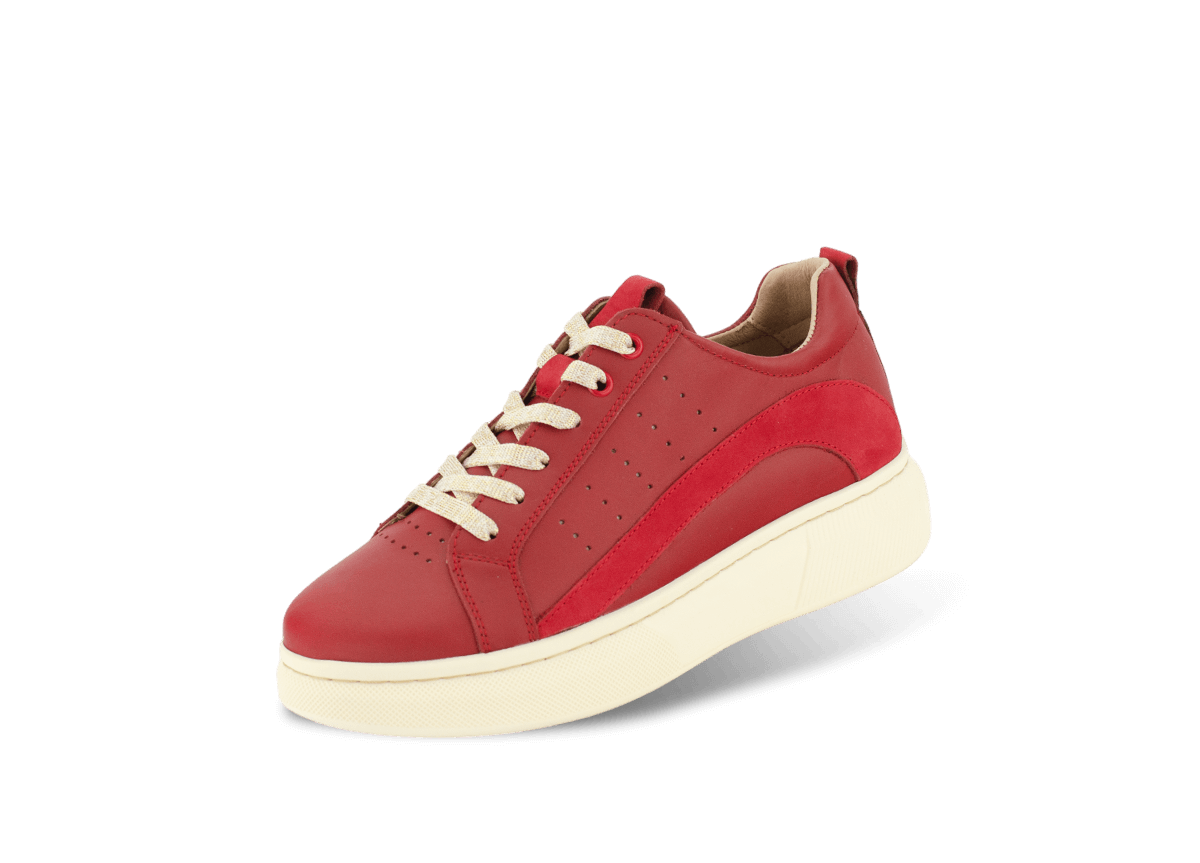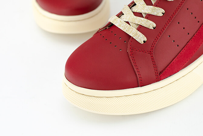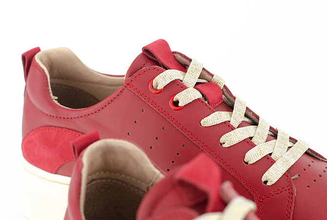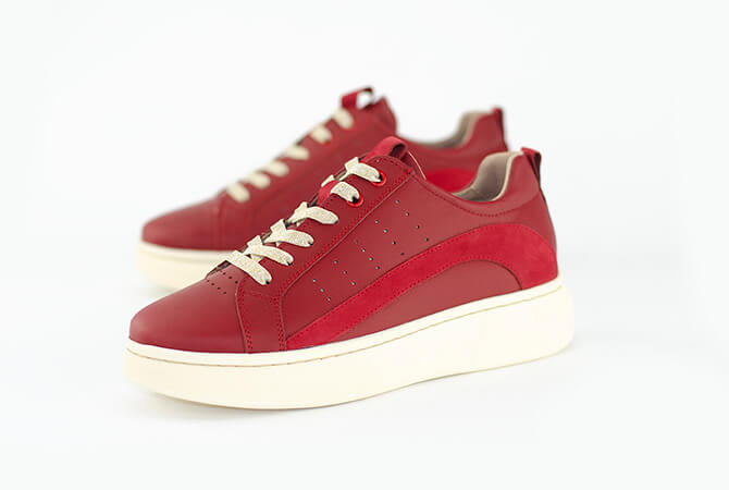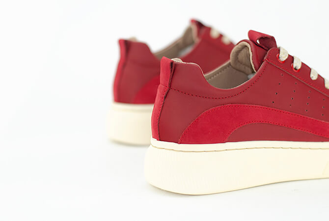 Обувките се отличават с изчистен и модерен дизайн, който е едновременно класически и ефектен. Основният им акцент е огненият червен цвят, който добавя смелост и динамика на визията. Червеният цвят символизира енергия и страст, като привлича погледите и създава усещане за увереност и стил. Тази ярка и дръзка цветова палитра прави маратонките чудесно допълнение към различни тоалети, особено за жените, които обичат да добавят цветни акценти в гардероба си. Контрастиращите бели елементи създават стилен баланс, подчертавайки чистотата и елегантността на дизайна. Белите връзки и бялото ходило добавят свежест и завършеност на визията, като същевременно осигуряват стабилност и комфорт при ходене.