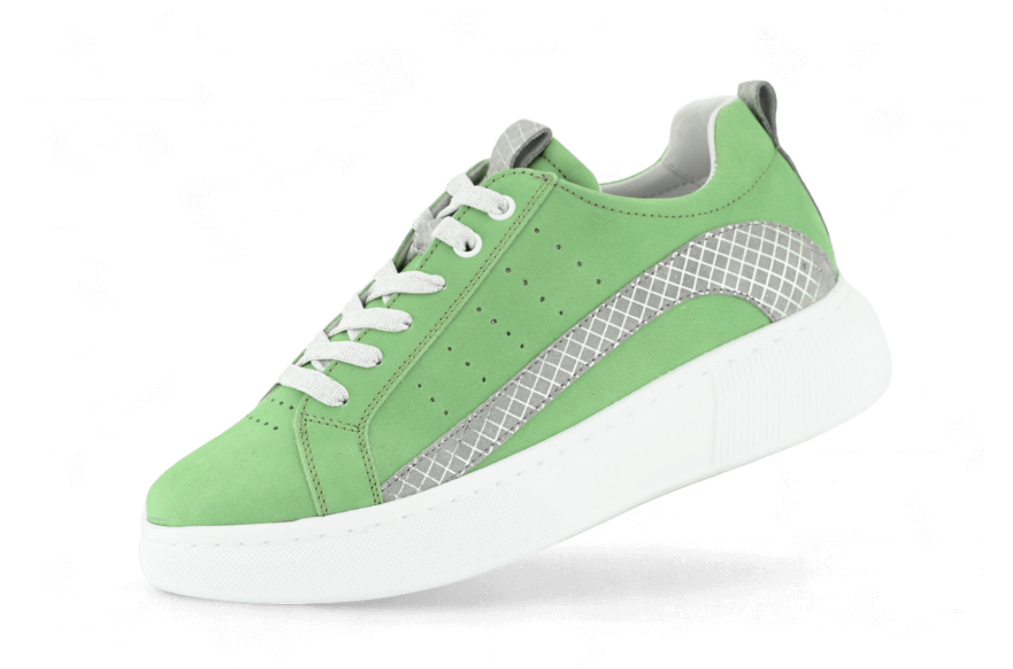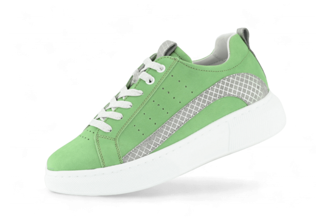 Дизайнът на обувките е минималистичен и изискан, с акцент върху свежия зелен цвят, който добавя модерен и свеж нюанс към вашия тоалет. Зеленото символизира естественост и хармония, а в комбинация с контрастиращите бели елементи създава динамична и модерна визия. Белите детайли подчертават дизайна на обувките, добавяйки акценти, които придават на маратонките по-свеж и привлекателен вид. Тази цветова комбинация е идеална за жени, които искат да добавят нотка цвят и енергия към своето ежедневно облекло.