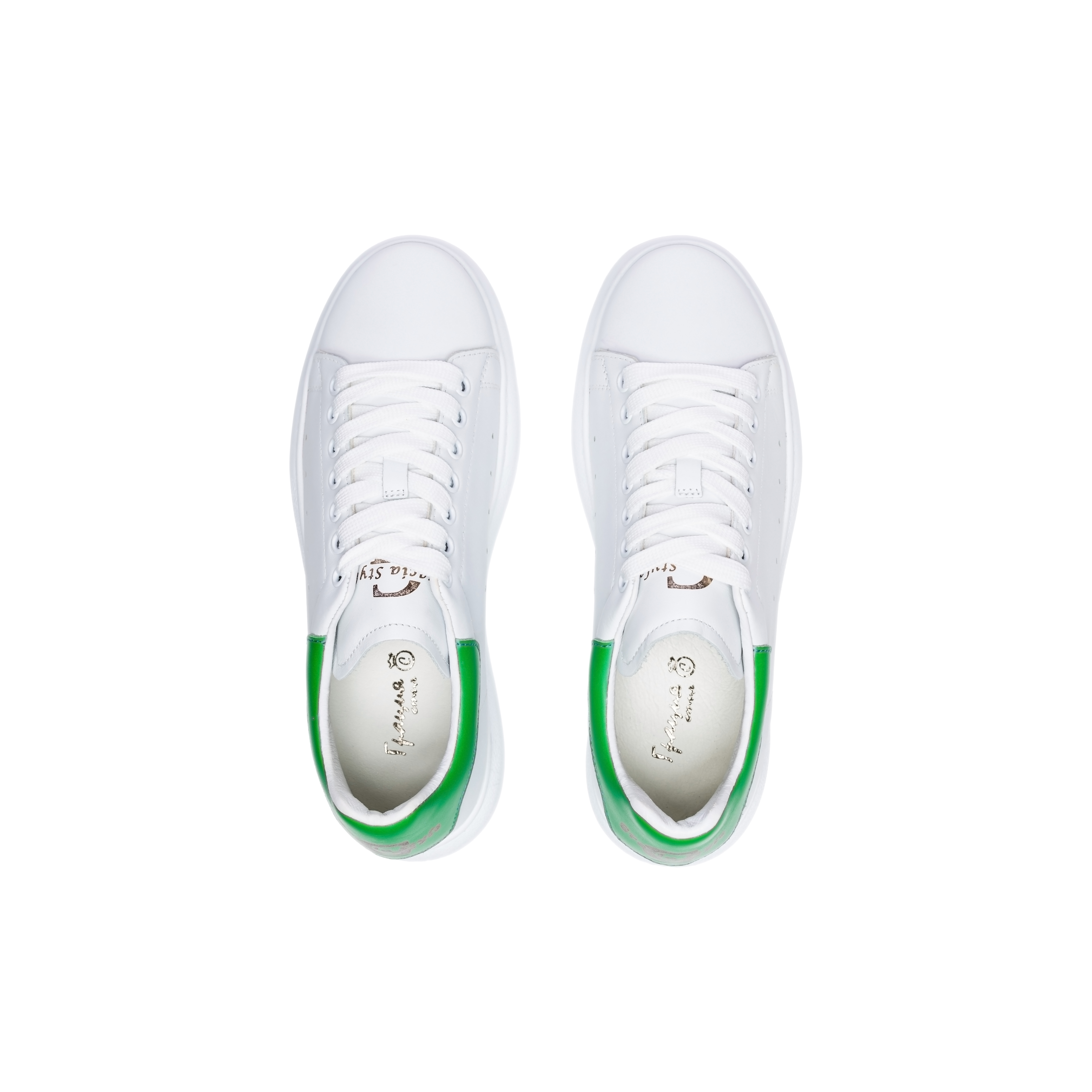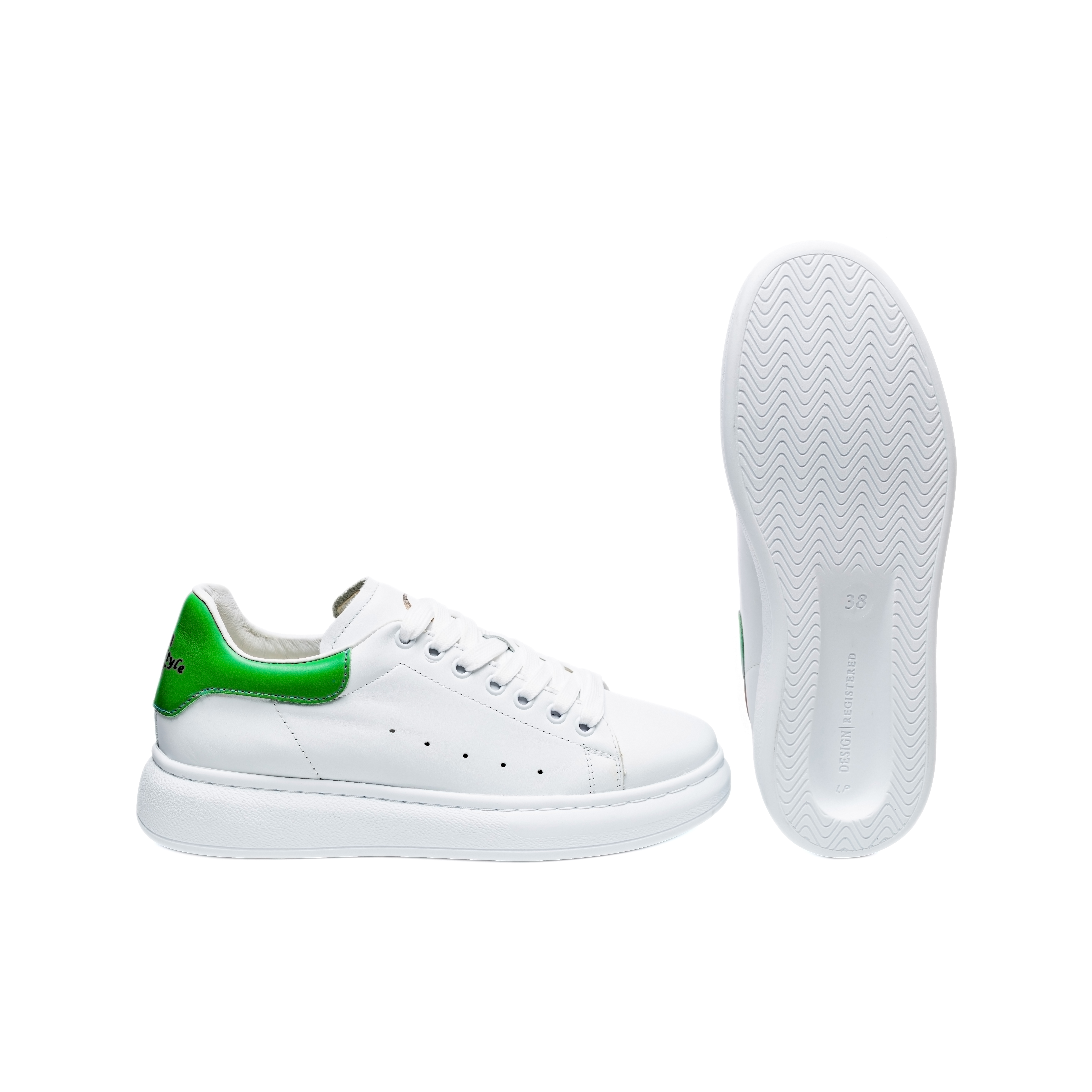 Дамски спортни маратонки в бял и зелен цвят