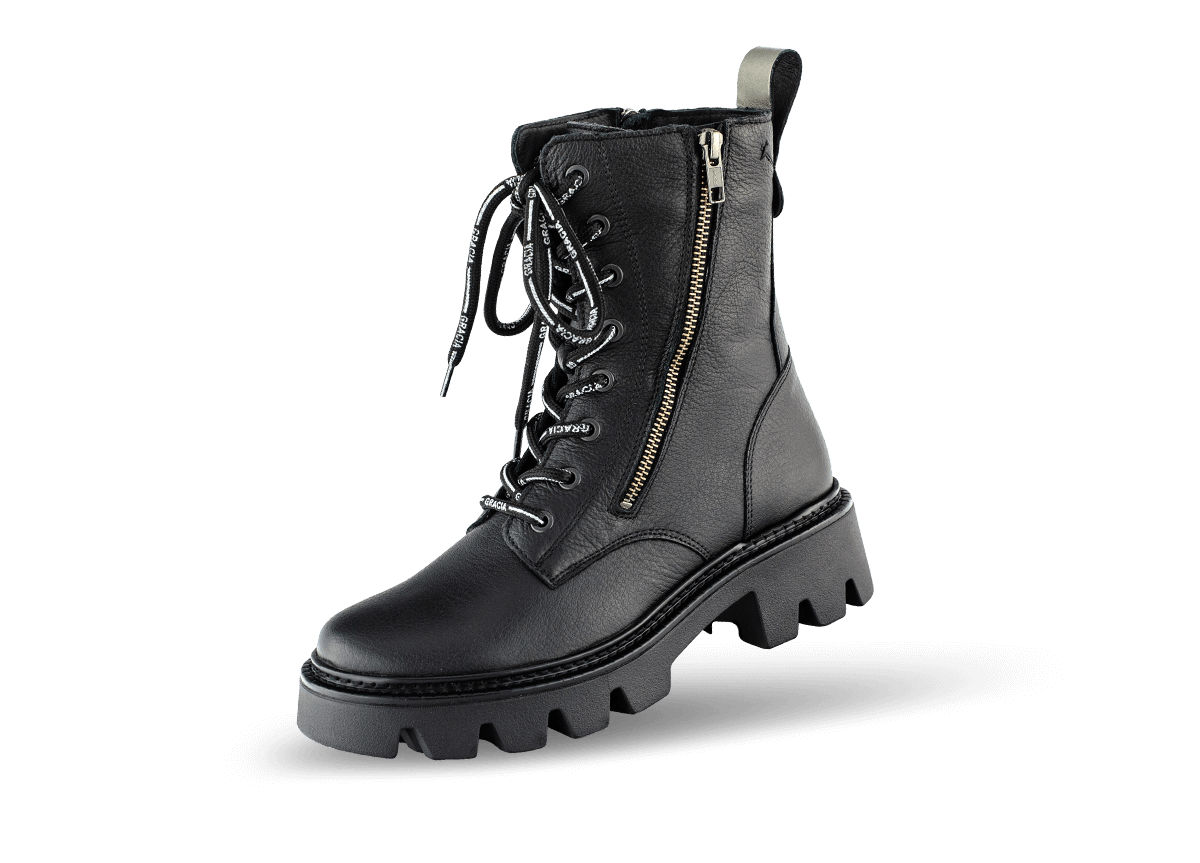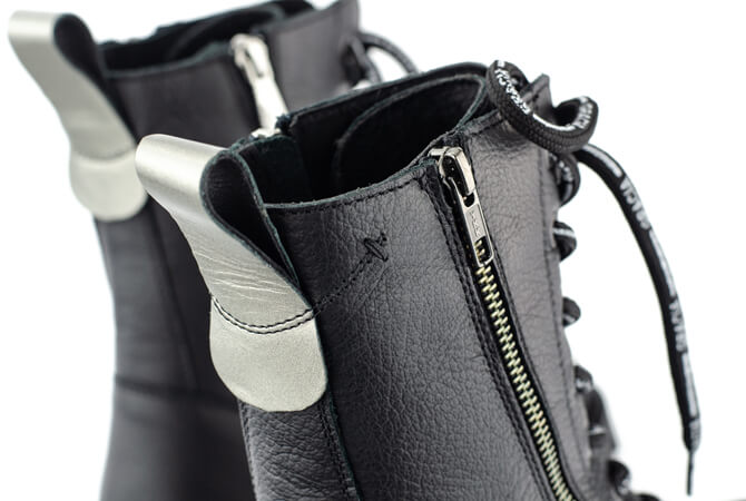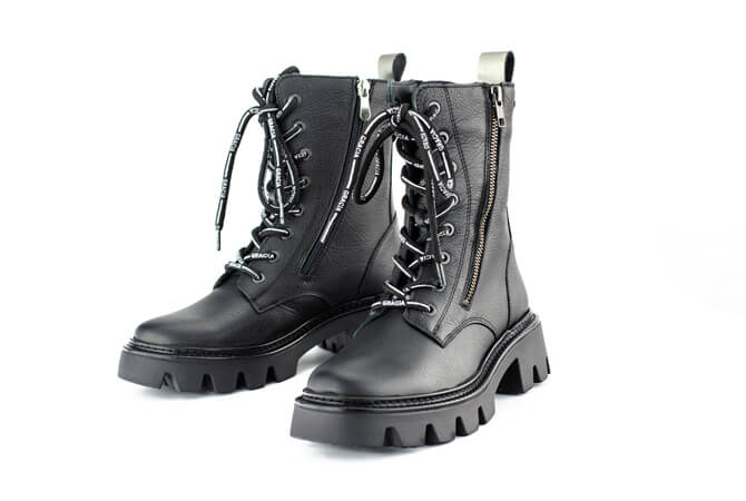 Визията на дамските кубинки естествена кожа е завършена с елегантен черен цвят, който се съчетава с всякакви дрехи. Допълнителни елементи като връзки и декоративен цип от външната страна придават модерен вид, а ципът от вътрешната страна осигурява бързо и удобно обуване и събуване. Това е особено важно за жените, които ценят времето си и искат да бъдат готови бързо.
