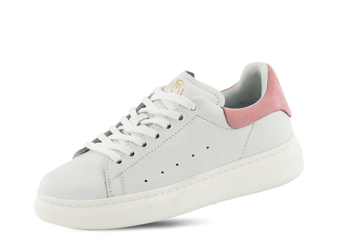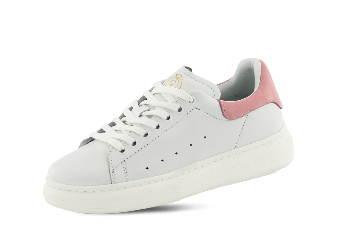 Свежи дамски маратонки в бяло и розов акцент. Цветовата комбинация е приятна и нежна и лесно може да се комбинира с различни аксесоари и облека.