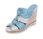 Изключително свеж модел дамски чехли с клиновиден ток, с които ще се чувствате отлично през целия ден. За тях са избрани много нежни цветове - бял и светлосин, благодарение на което се комбинират с лекота.