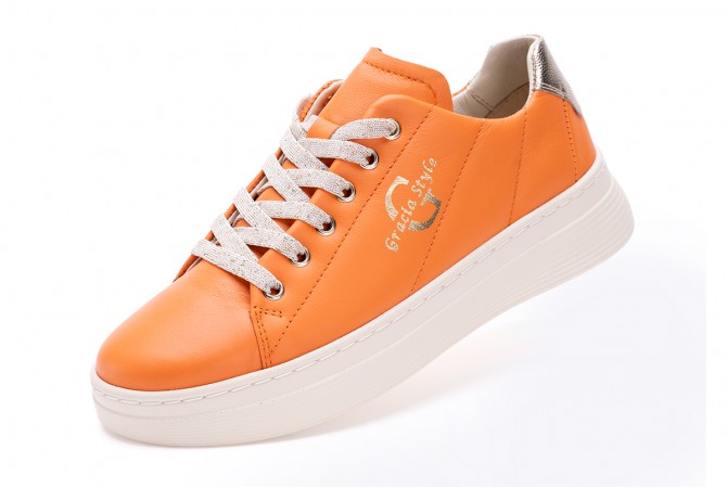 Изразете своя стил с тези маратонки от естествена кожа в оранжев цвят . Съчетавайки класическия дизайн с модерни детайли, модела предлага изключителен комфорт, здравина и отличителна визия. Сребристият акцент на петата добавя фин блясък и уникален характер. Изработен от висококачествени материали и се поддържа с лекота.
