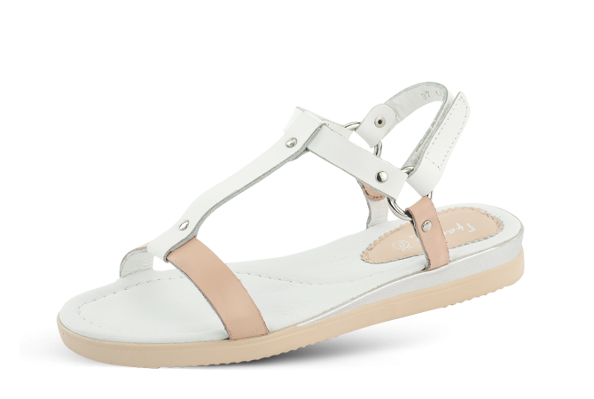 A pair of women's sandals in a stunning combination of pink and white colour, thanks to that, they're incredibly easy to pair with all types of summer clothing. The design of the sandals itself is very neat and clean, making them the perfect solution for every day wear.